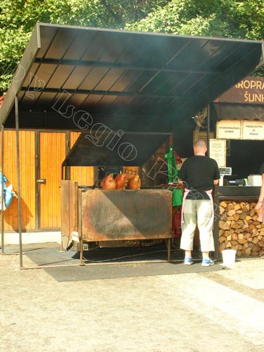 locali che arrostiscono maiali interi sulla pubblica via e