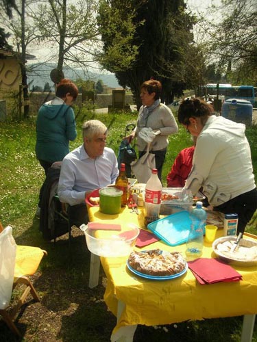 A pranzo finito, breve pausa di ristoro, smontaggio del campo base e poi con calma verso il luogo di gara a cercare un po' di ristoro, ma forse il ristoro trovato fu esagerato.