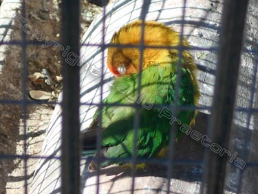 nei Giardini Reali raggiungo le voliere, dove uccelli colorati